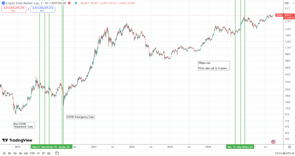 - The total crypto market cap had surged 60.62% in the two months preceding the cut, creating extreme overbought conditions